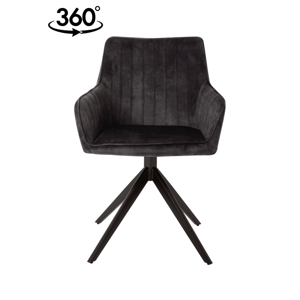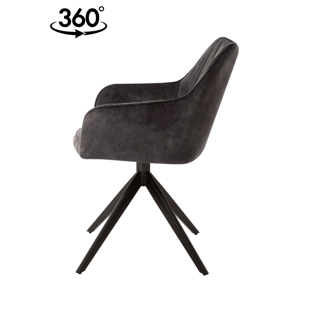Tmavě šedá sametová Jídelní židle Cannes má moderní design, který je zahalen do stylového kabátu. Kombinace tmavě šedého sedáku a černých kovových nohou je nabitá třídou, takže židle se stane skutečným poutačem Vaší jídelny!