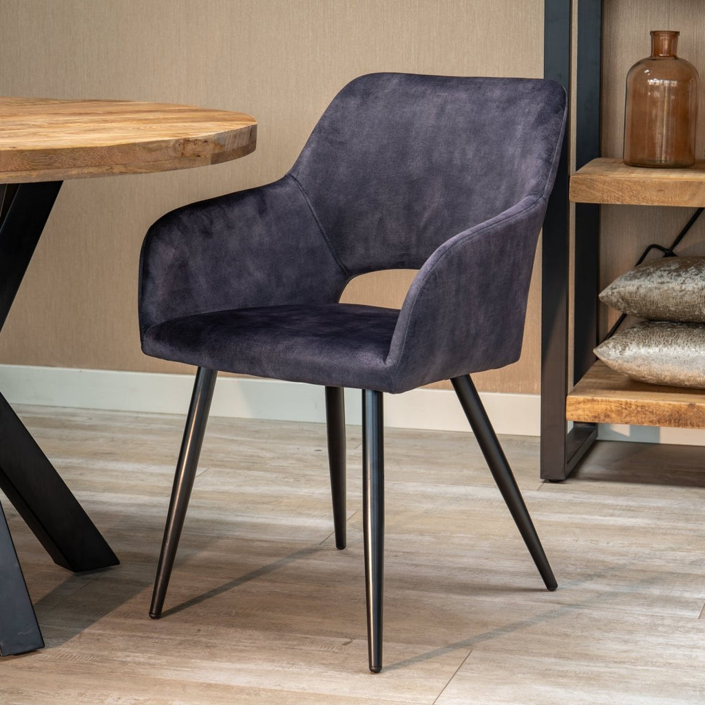 Díky otevřenému opěradlu vytváří jídelní židle Nantes v jídelně stylový prostorový efekt. Tmavě šedé sedátko je vyrobeno z měkkého sametu a je podepřeno pevnou černou základnou. Tato krásná židle je ideálním doplňkem do Vašeho interiéru.