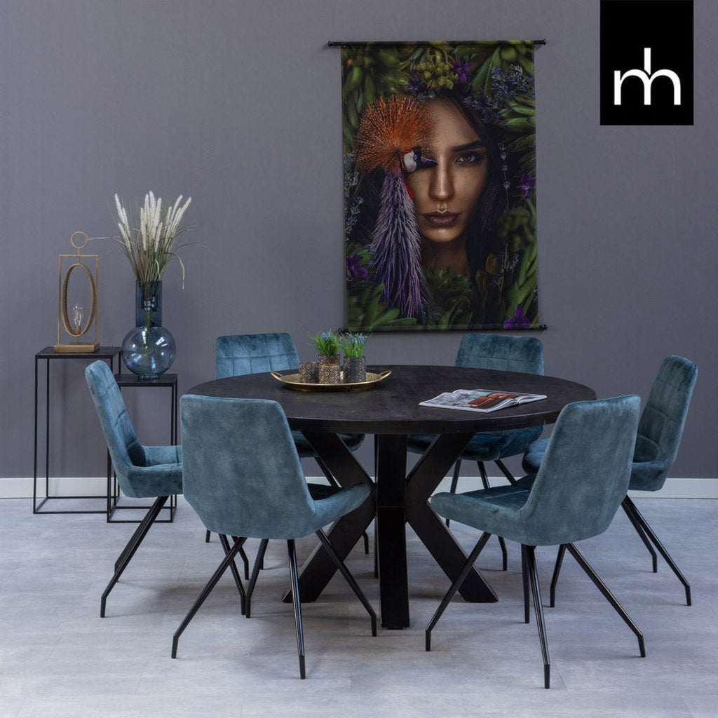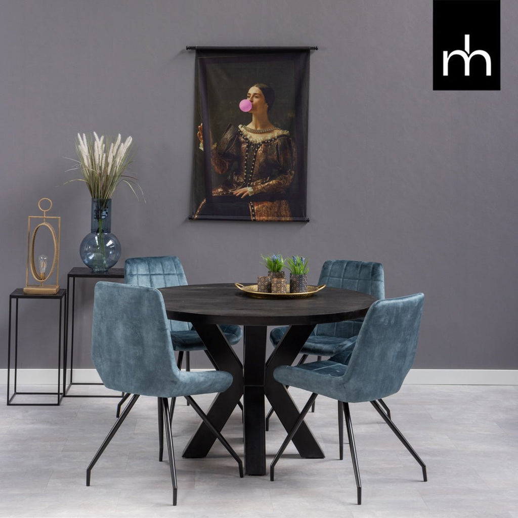 Design jídelní židle Toulouse dokonale zapadne do industriálního interiéru. Měkké sametové sedátko je podepřeno čtyřmi hranatými černými kovovými nohama, které dodávají této klasické židli trendový vzhled.