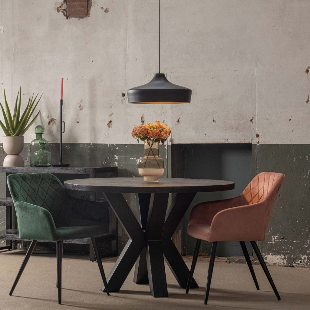 Tento kulatý jídelní stůl z mangového dřeva Madison Black Ø 130 Mahom má černou kovovou matricovou nohu, a proto vypadá dobře v každém interiéru. Deska stolu z masivního mangového dřeva má tloušťku 5 cm a je nejprve opískována, ošetřena černou glazurou a nakonec upravena tmavým přírodním včelím voskem pro ochranu dřeva před vlhkostí, nečistotami a kroužky. Stůl se snadno čistí mírně navlhčeným hadříkem. Základna má ocelovou pavoukovou nohu, která byla ošetřena černou práškovou barvou.