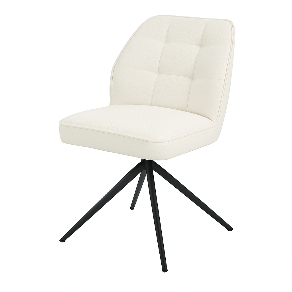 Jídelní židle Bayonne bílá je stylovým doplňkem vaší jídelny. Čerstvá bílá látka vytváří bohatý vzhled, zatímco černý práškem lakovaný kovový podklad nabízí tvrdý akcent. Sedadlo je také otočné, což u stolu poskytuje větší pohodlí a flexibilitu.Židle má samostatné sedadlo a nohy, které si můžete snadno sestavit sami.