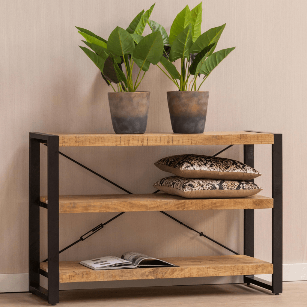 Nízká verze knihovny Minneapolis je praktická a pevná knihovna do Vašeho interiéru, která navíc zabírá málo místa díky svým malým rozměrům. Dvě ocelové tyče na zadní straně dělají tuto knihovnu mimořádně pevnou. Díky otevřené zádi je skříňka vhodná i jako TV nábytek!