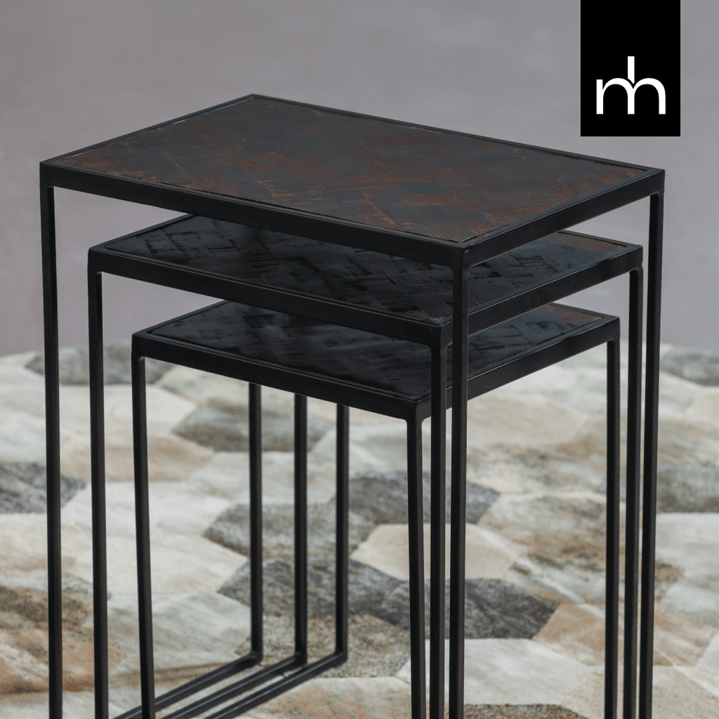 Stoly jsou smontovány a dodány k Vám v sadě 3 ks. Největší stůl je vysoký 57 cm a má desku 46x31 cm. Střední je vysoký 49 cm a má vršek 39x31 cm. Nejmenší je vysoký 41 cm a má stolovou desku 32x31 cm.