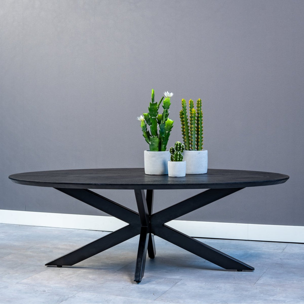 Konferenční stolek z mangového dřeva Vicenza černý oválný Mahom