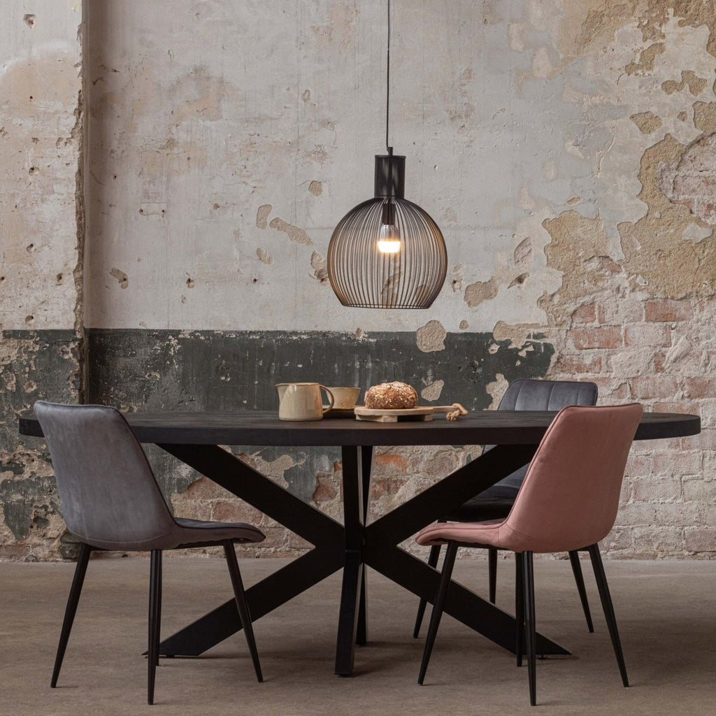 Toto je jeden z našich menších černých oválných jídelních stolů ze série Tulsa, ale rozhodně není horší než jeho větší bratři. Stůl má velmi chladný a robustní charakter a tvar desky poskytuje ještě více prostoru a útulnosti v domě!