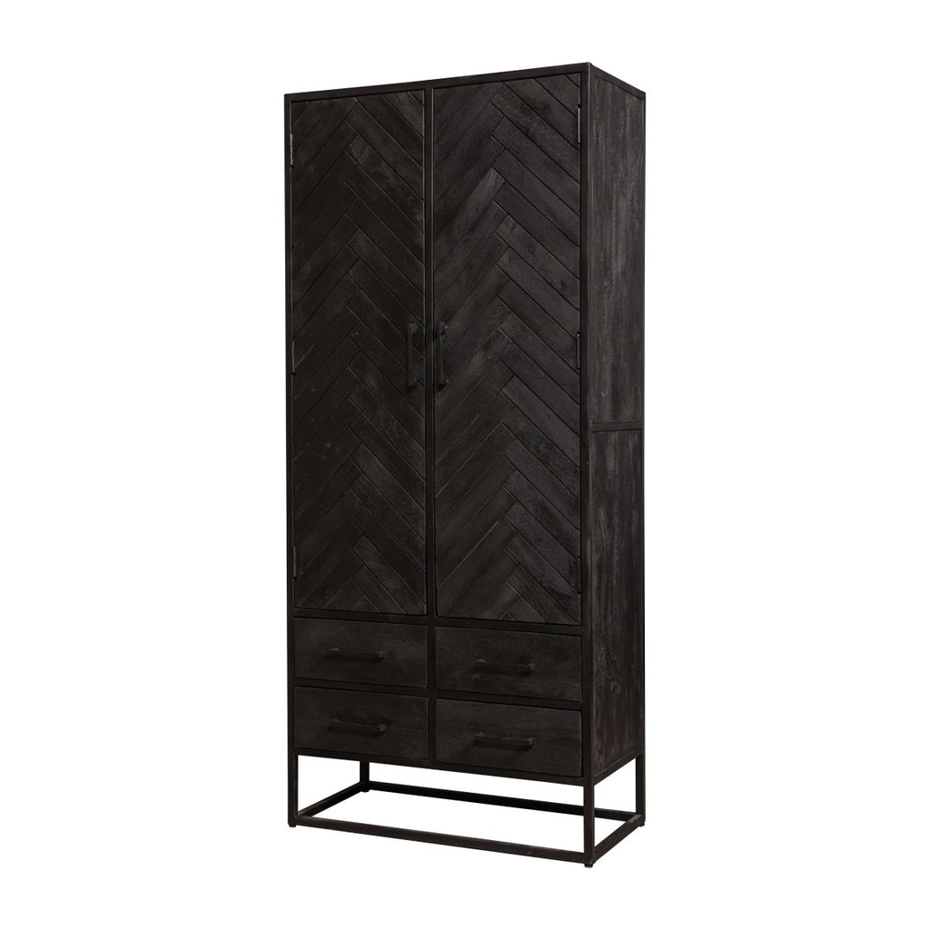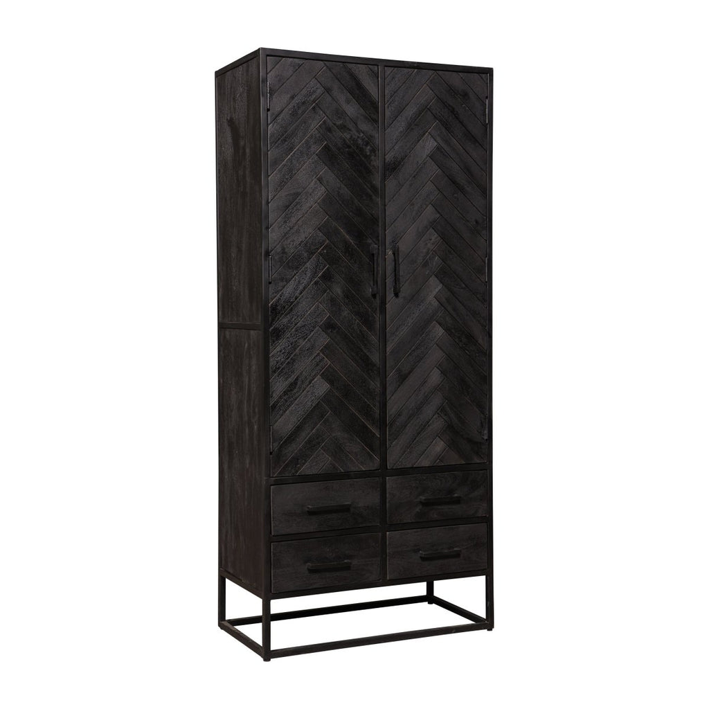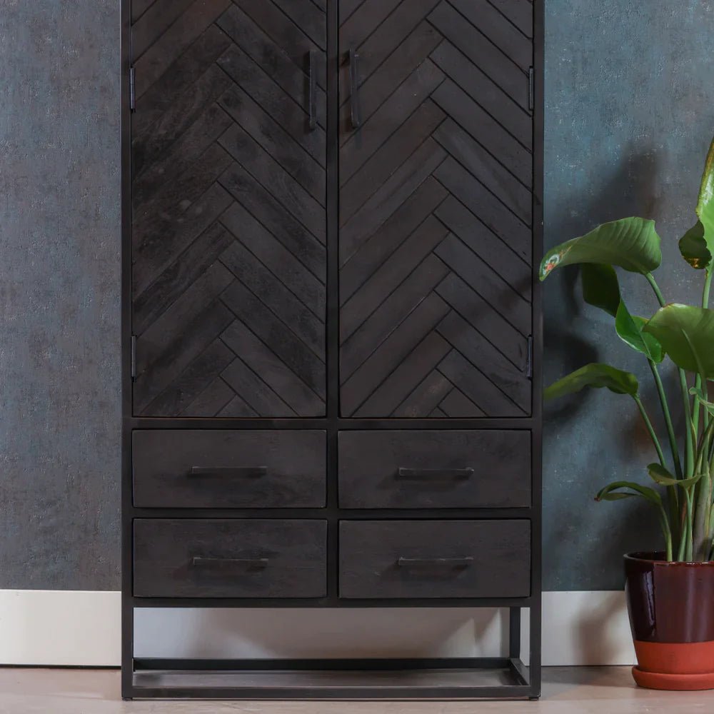 Krásný šatník Toronto Black okamžitě upoutá pozornost každého. Tato černá skříňka má vzor rybí kosti, který skříňce dodává velmi šik charakter, s nímž nebude nábytek v žádné místnosti působit nevhodně. Skříňka se skládá ze čtyř zásuvek ve spodní části a dvou velkých přihrádek za dvířky pro uložení nejrůznějších věcí.