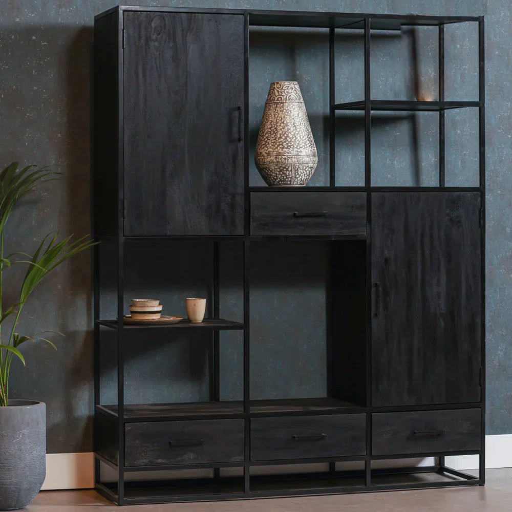 Florence XXL police stojí skvěle v každém domě. To samozřejmě není žádným překvapením s takovými prostornými rozměry. Kombinace černého mangového dřeva a černého kovu přidává do velkolepého nábytku další nádech třídního nábytku.