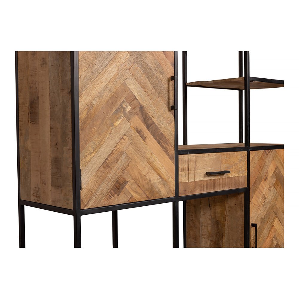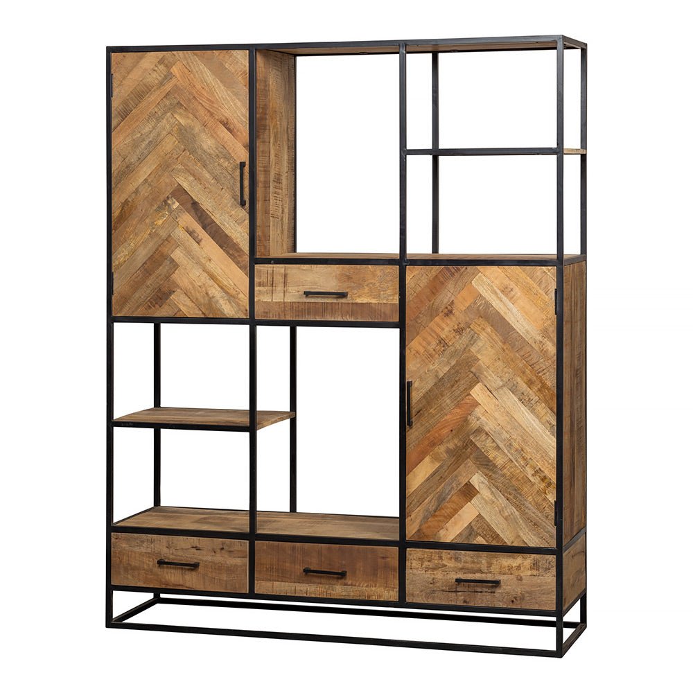 Tato všestranná skříň New Haven XXL má spoustu úložných a dekoračních možností. Díky dvěma velkým dvířkům a čtyřem zásuvkám uložíte spoustu věcí, které nemusíte mít na očích. Otevřené přihrádky navíc skvěle poslouží jako prostor pro dekorace. Kombinace vzoru rybí kosti s teplým mangovým dřevem dodává této skříňce robustní a elegantní vzhled.
