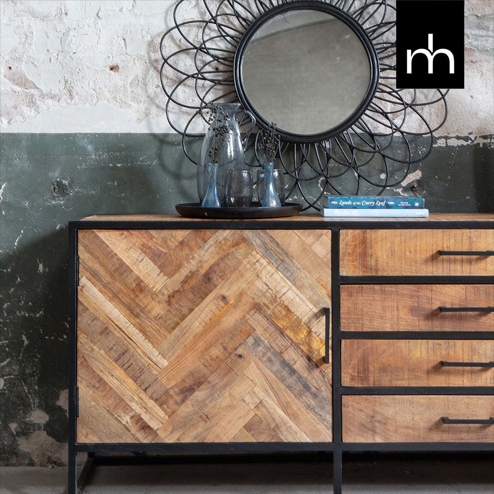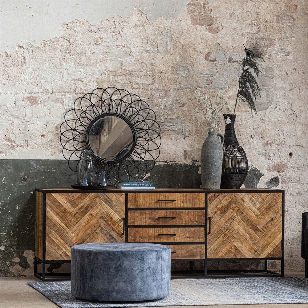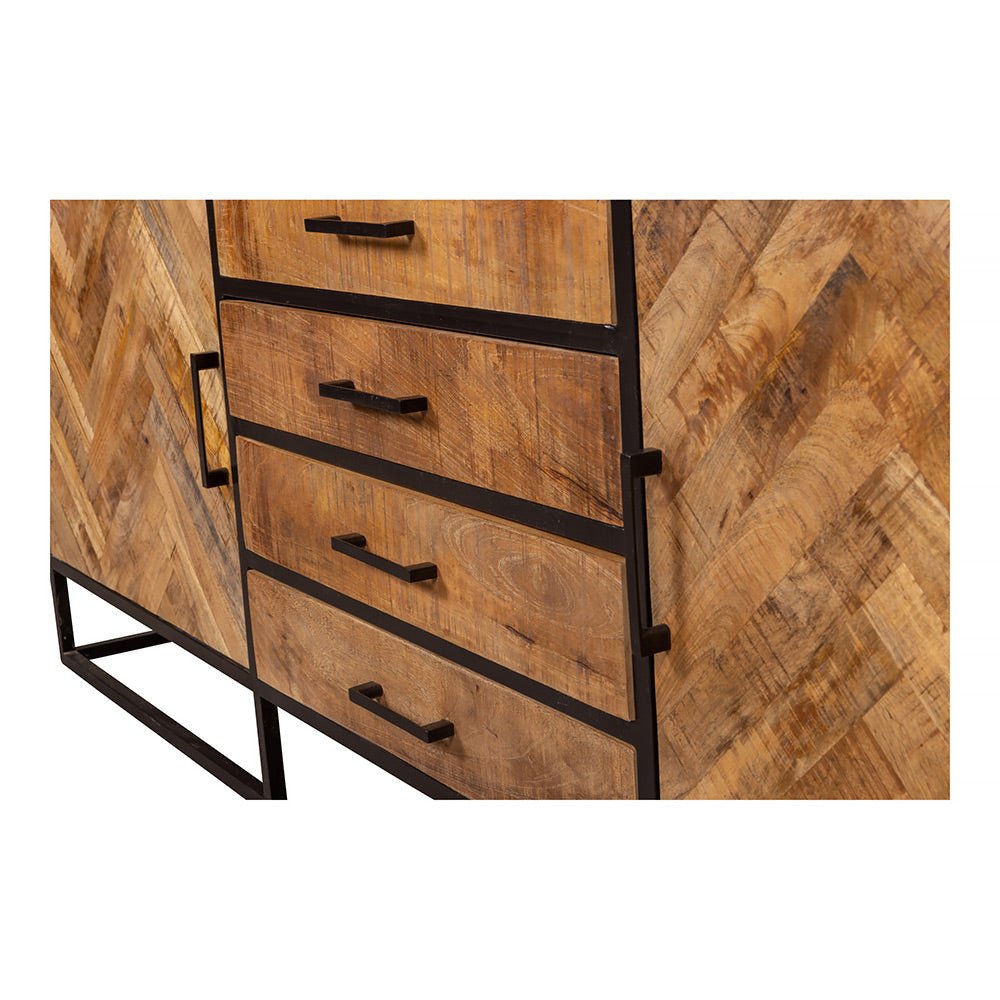 Tento příborník z mangového dřeva New Haven se liší od našich ostatních příborníků, neboť dvířka jsou ošetřena elegantním vzorem rybí kosti. Skříň se skládá ze dvou přihrádek za každým dveřmi se čtyřmi zásuvkami mezi nimi pro uložení věcí. Lze také použít rostliny nebo svíčky na vrchu, abyste dali místnosti ještě více barvy!