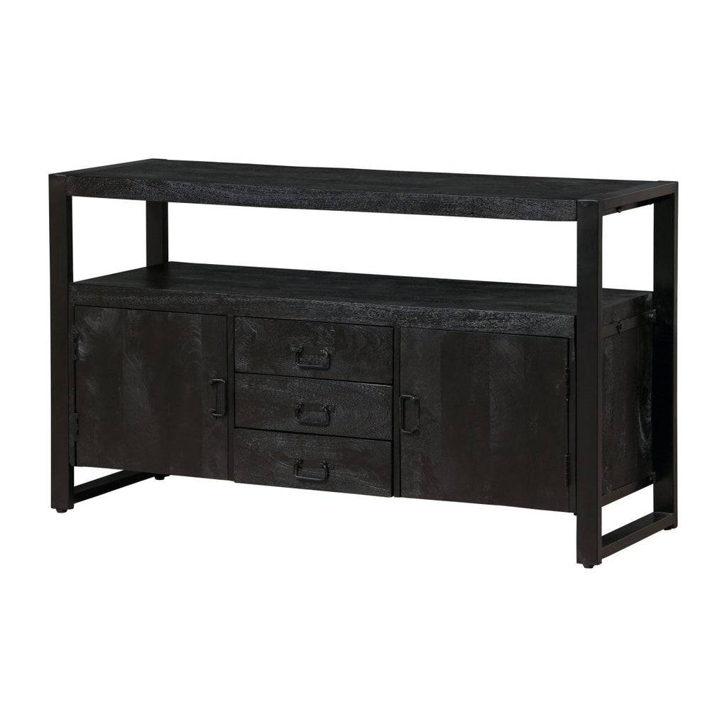 Masivní mangové dřevo je nejprve opískované, následně ošetřené černou barvou a nakonec upravené tmavým přírodním včelím voskem, který chrání dřevo před vlhkostí, nečistotami a kroužky. Kovové rámy a rukojeti jsou ošetřeny černou práškovou barvou.