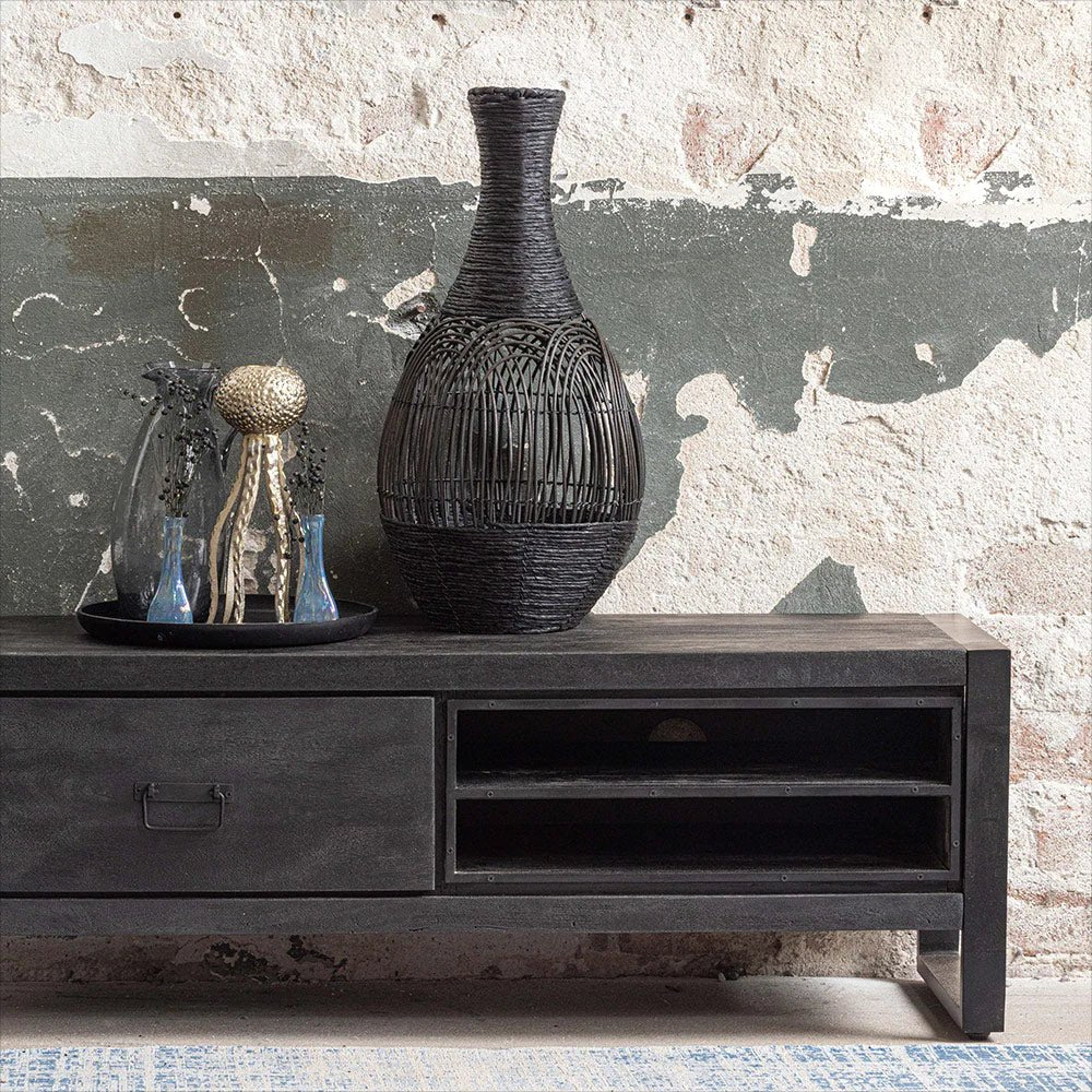 Nejmenší verze TV nábytku Stockton Black je pevná skříňka vyrobená z masivního mangového dřeva a černých ocelových akcentů. Černé mangové dřevo dodává nábytku elegantní, ale také robustní vzhled. Otevřená přihrádka má dostatek místa pro zesilovač nebo router. Hluboká zásuvka poskytuje další prostor pro uložení Vašich věcí.