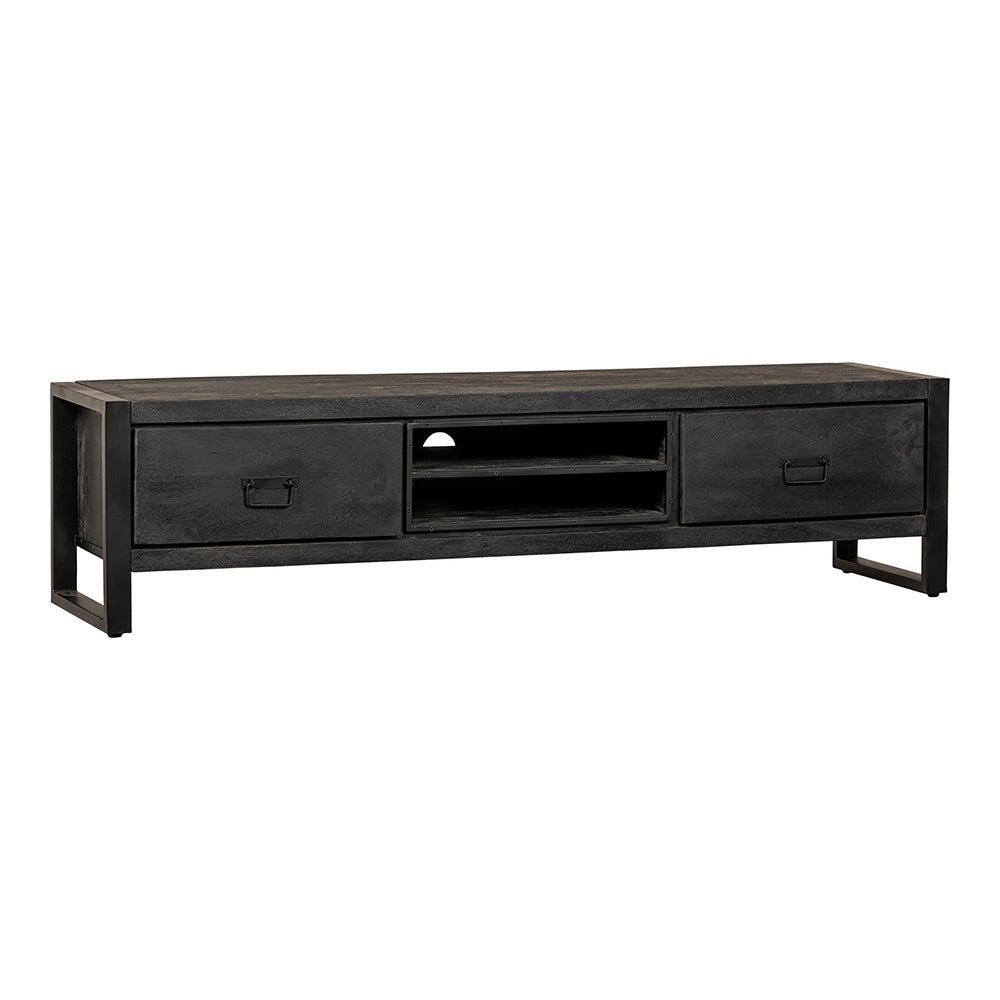 Největší TV skříňka ze série Stockton Black je odolná, ale zároveň šik. Skříňka má design jako žádná jiná a díky velkému úložnému prostoru v zásuvkách a otevřených přihrádkách lze rozložit na různé způsoby. Kromě televize je zde dostatek místa například také na rostliny, fotografie nebo svíčky.