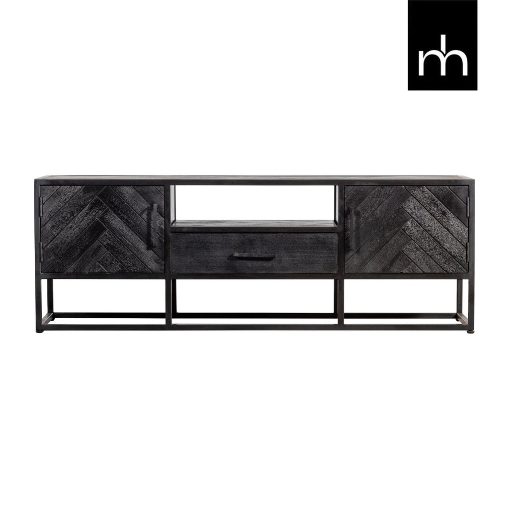 Díky elegantnímu vzhledu se s úzkým TV nábytkem Toronto v černé barvě můžete vydat všemi směry. Nábytek se hodí nejen svojí velikostí, ale také trendovým vzorem rybí kosti do každého interiéru. Elektronické zařízení lze umístit do otevřeného prostoru. Prostory za dvířky a jedna zásuvka také poskytují potřebný úložný prostor.