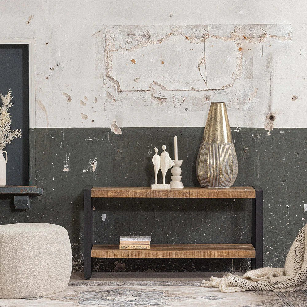 Prostorný TV nábytek Montana má klasický design, který díky teplému mangovému dřevu a kovovým nožičkám působí industriálně. Nábytek je ideální pro umístění jiných dekorativních předmětů kromě televizoru a otevřená přihrádka je ideální pro uložení vybavení jako jsou herní konzole nebo TV přijímače.