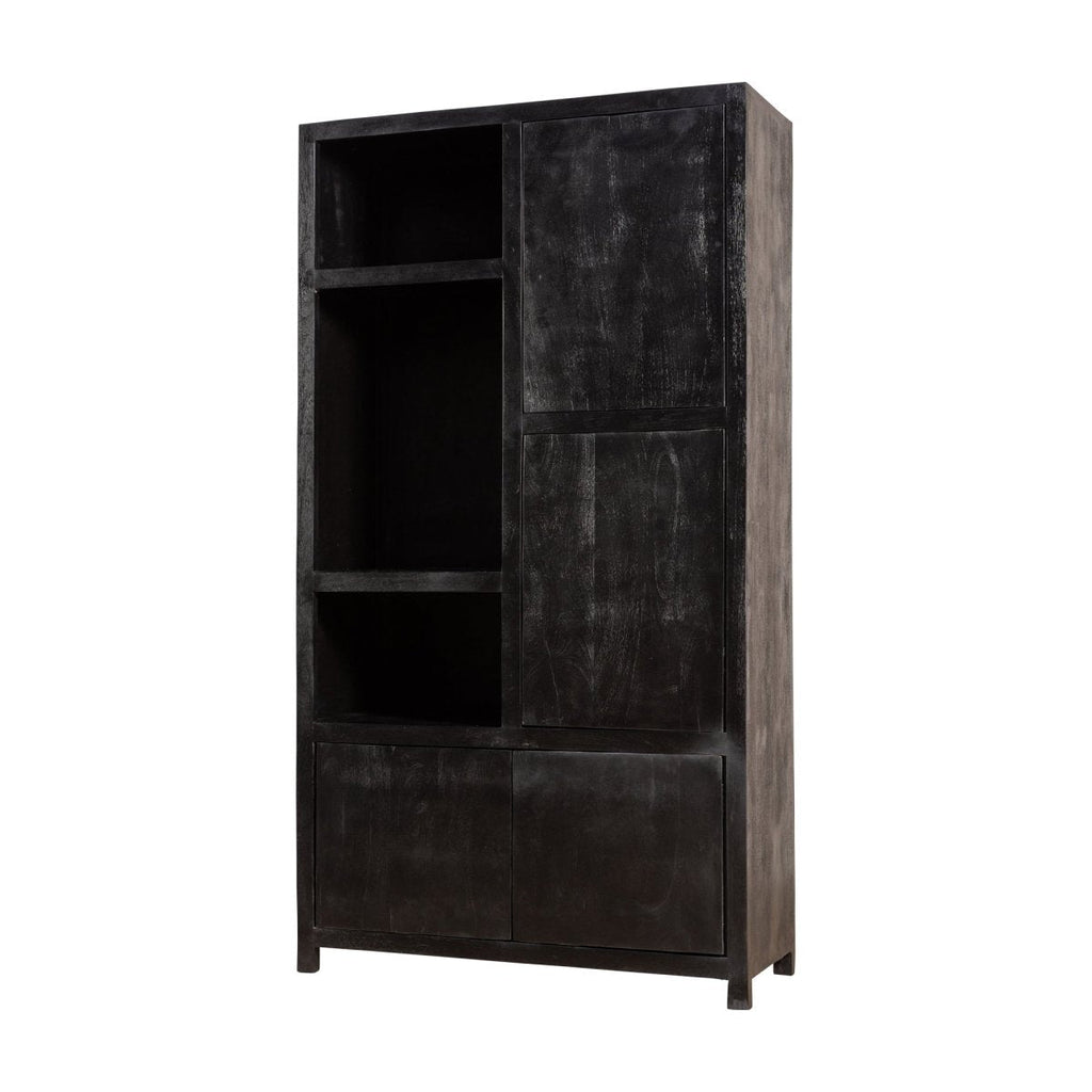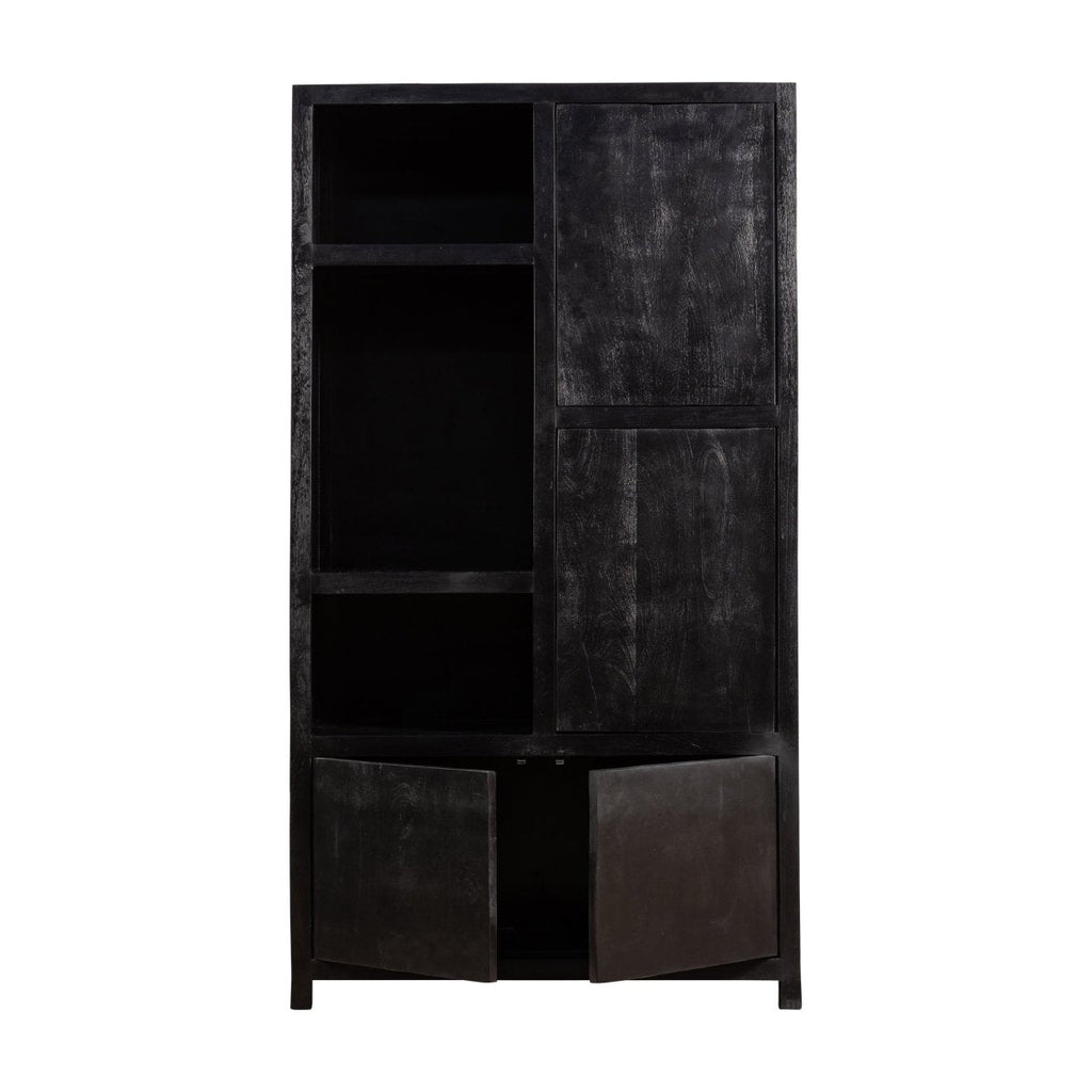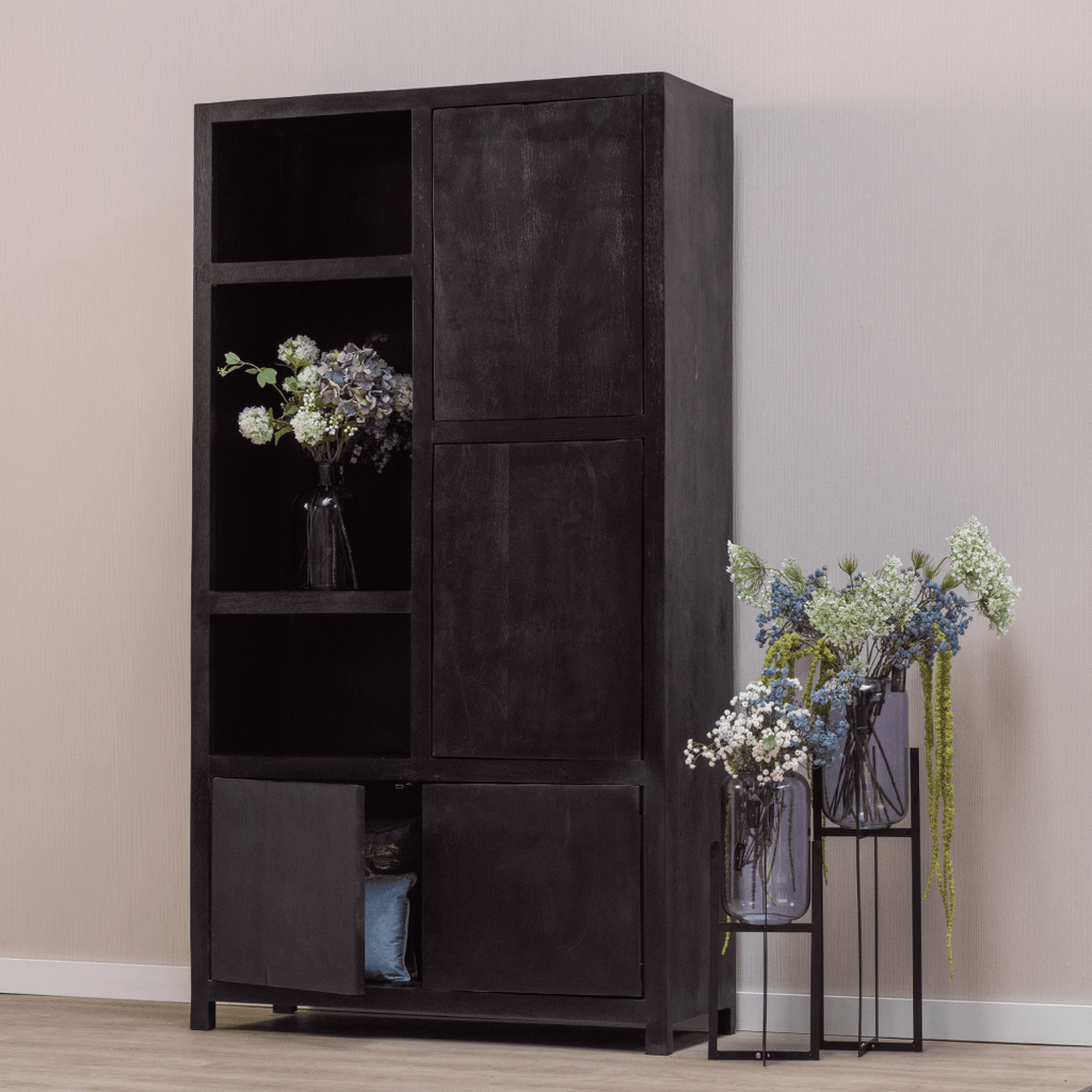 Nástenná skříň z mangového dřeva Phoenix 120 cm Mahom (3 otevřené přihrádky, 4 dvířka)