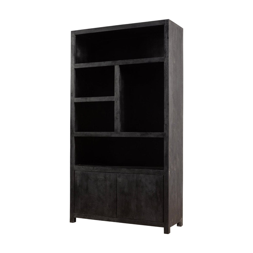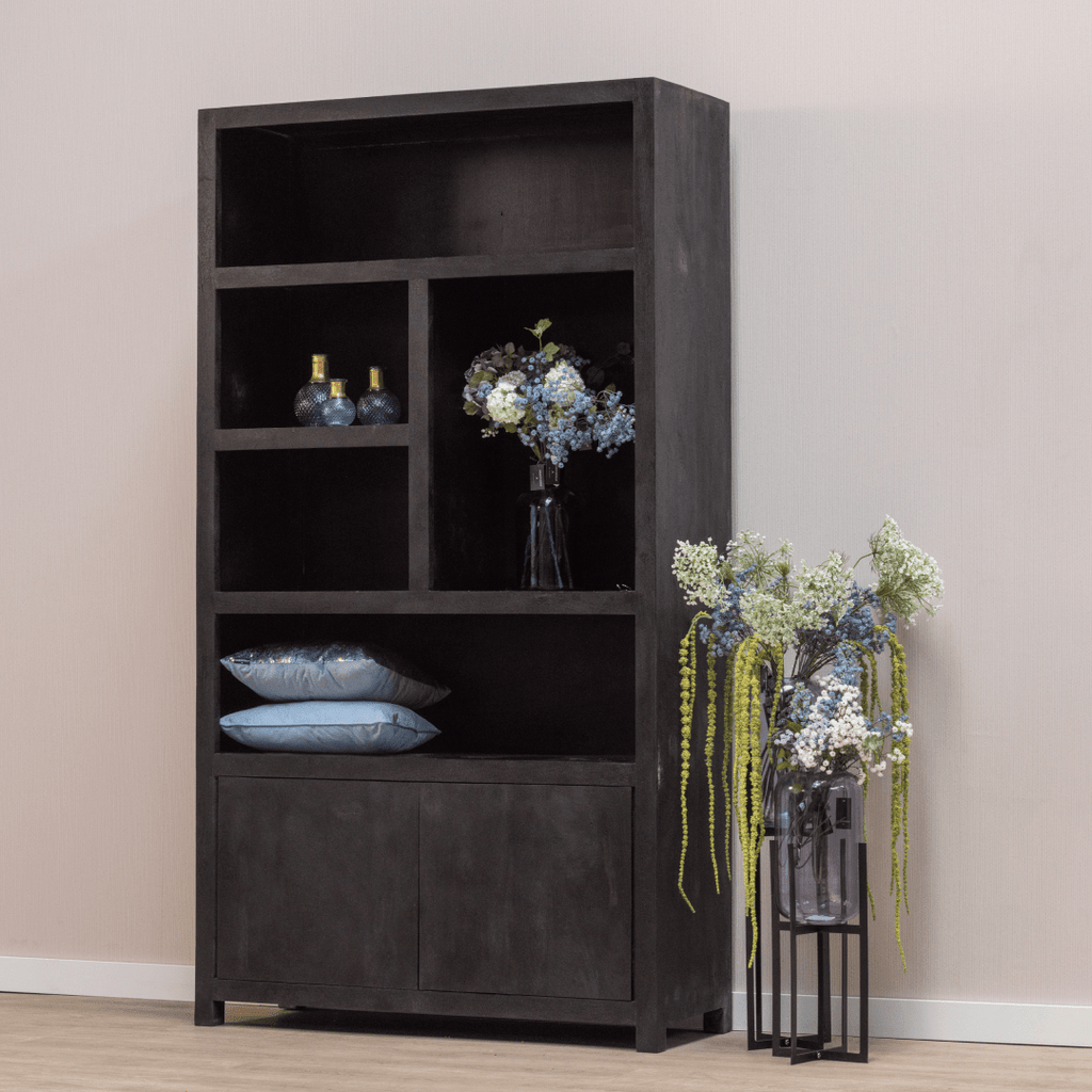 Nástenná skříň z mangového dřeva Phoenix 120 cm Mahom (5 otevřených přihrádek, 2 dvířka)