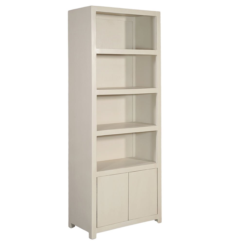 Nástěnná skříň z mangového dřeva Phoenix 80 cm krémová Mahom (4 otevřené přihrádky, 2 dvířka)