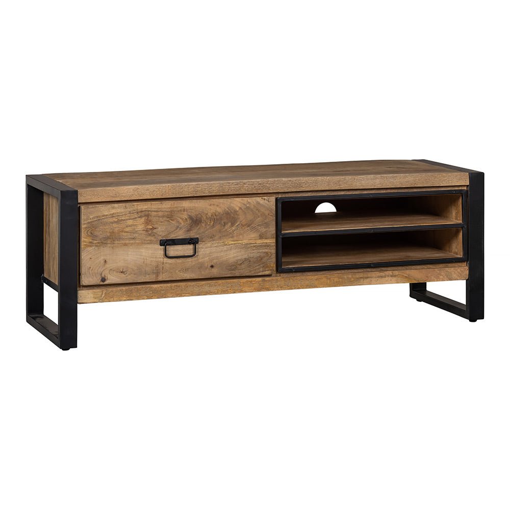 TV skříňka Stockton je jedním z top v naší kolekci! Kombinace teplého mangového dřeva a pevného černého kovu vyzařuje chladný průmyslový vzhled. Jedná se o nejmenší rozměr televizního nábytku Stockton, aby se nábytek přesně hodil do každé místnosti.